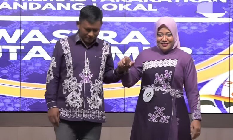 DIKSI.CO, KUTIM – Camat Long Mesangat, Rapichin bersama sang istri Yunani tampil memukau saat berjalan di atas panggung pada Lomba Busana Warsa yang diselenggarakan TP PKK Kutai Timur (Kutim), Rabu (26/11/2025).