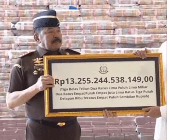 Penyerahan secara simbolis uang sebesar Rp 13.255.244.538.149 itu dilakukan oleh Jaksa Agung ST Burhanuddin kepada Menteri Keuangan Purbaya Yudhi Sadewa.